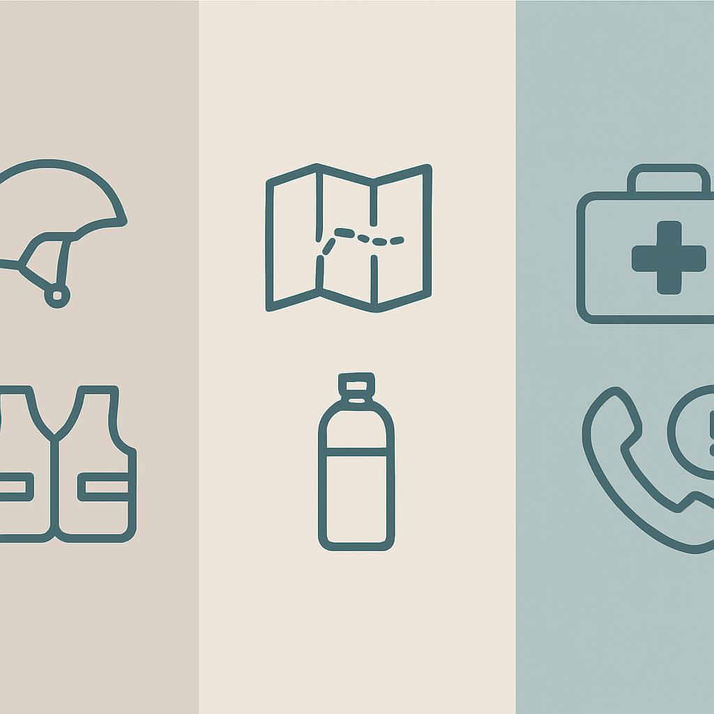 물과 간식, 간단한 응급약, 소형 구급함, 필요 시 사용할 수 있는 반바지 대신 긴 바지와 튼튼한 신발, 보험 정보와 긴급 연락처를 포함한 카드가 도움이 됩니다.